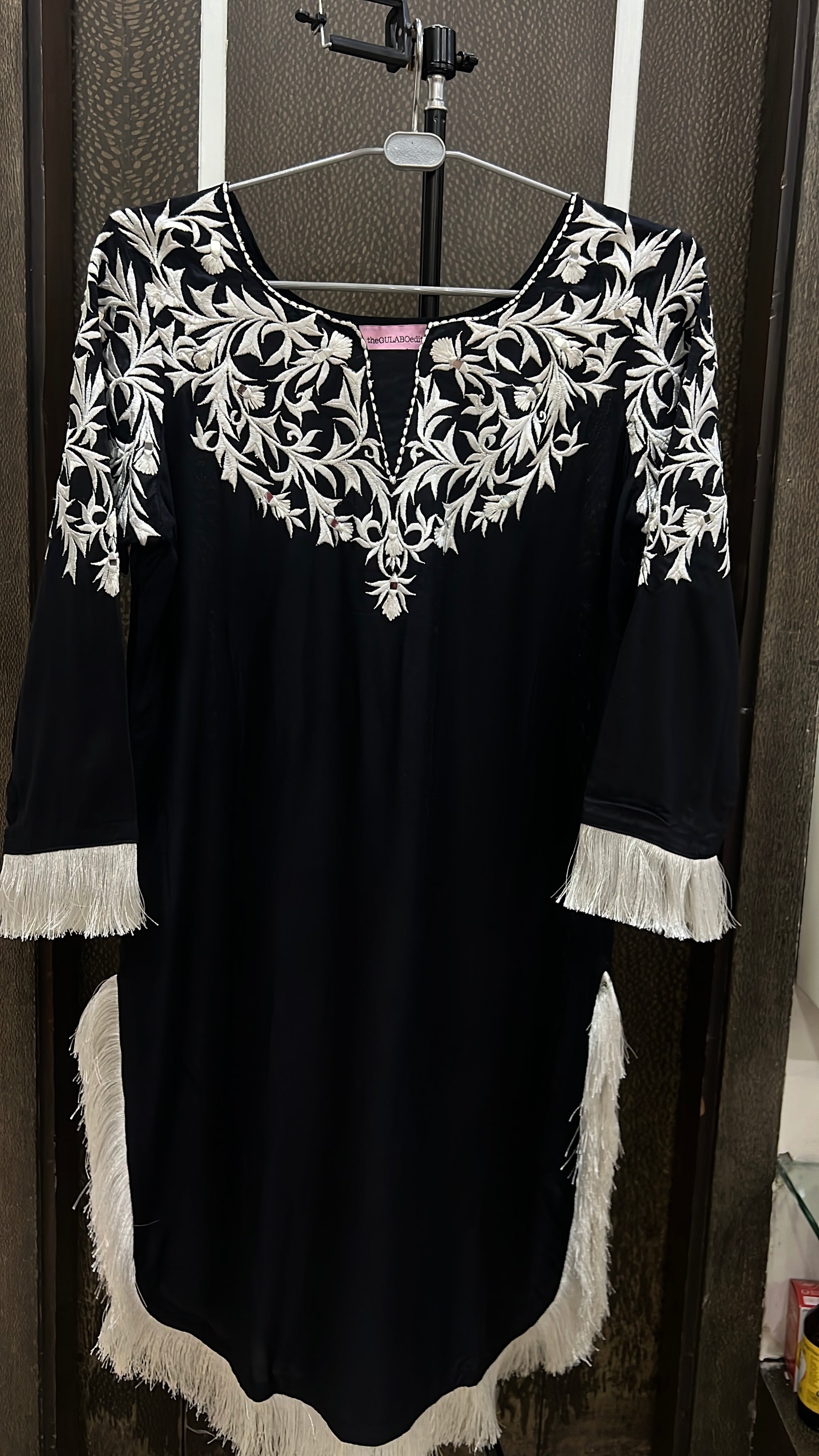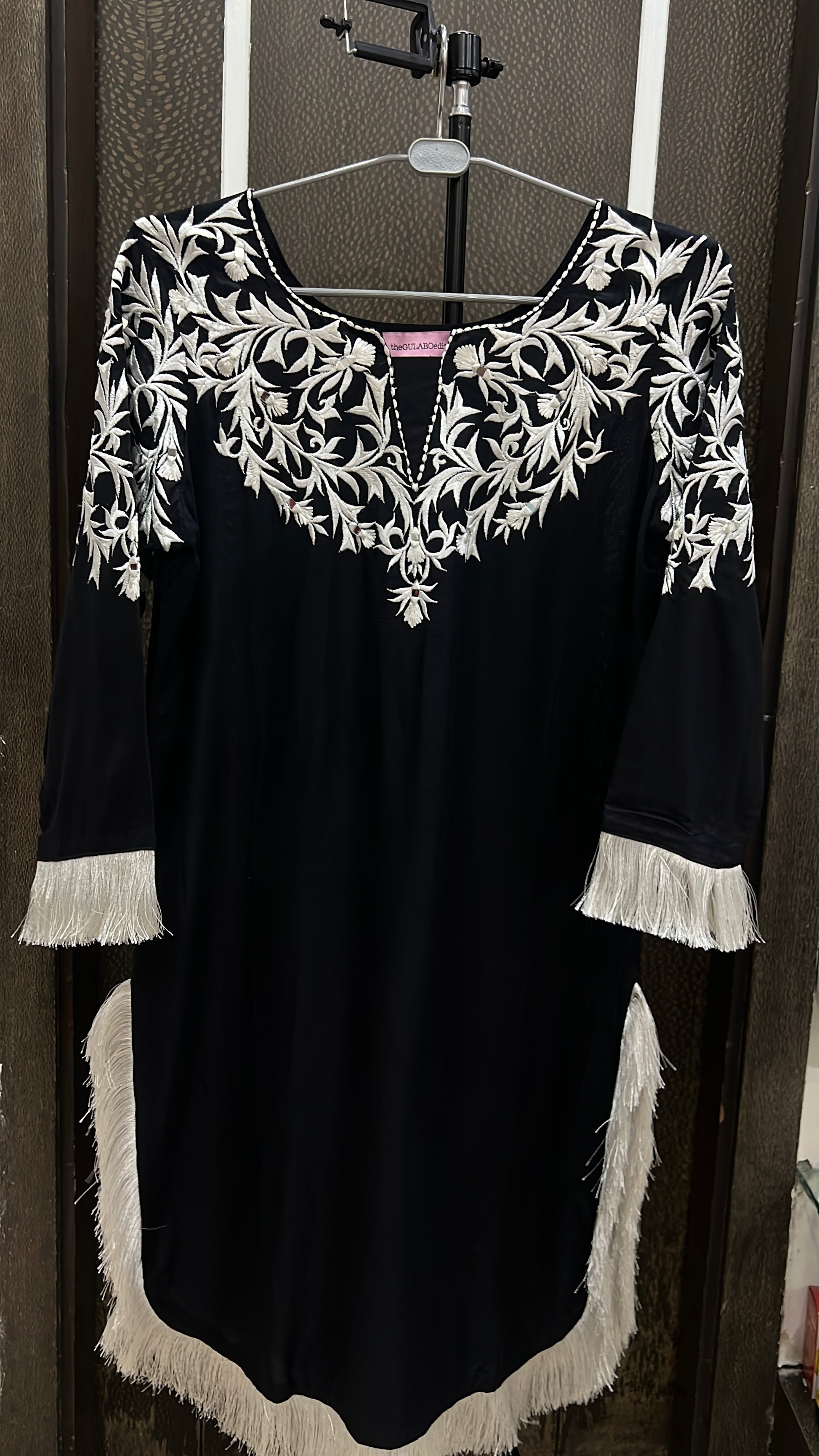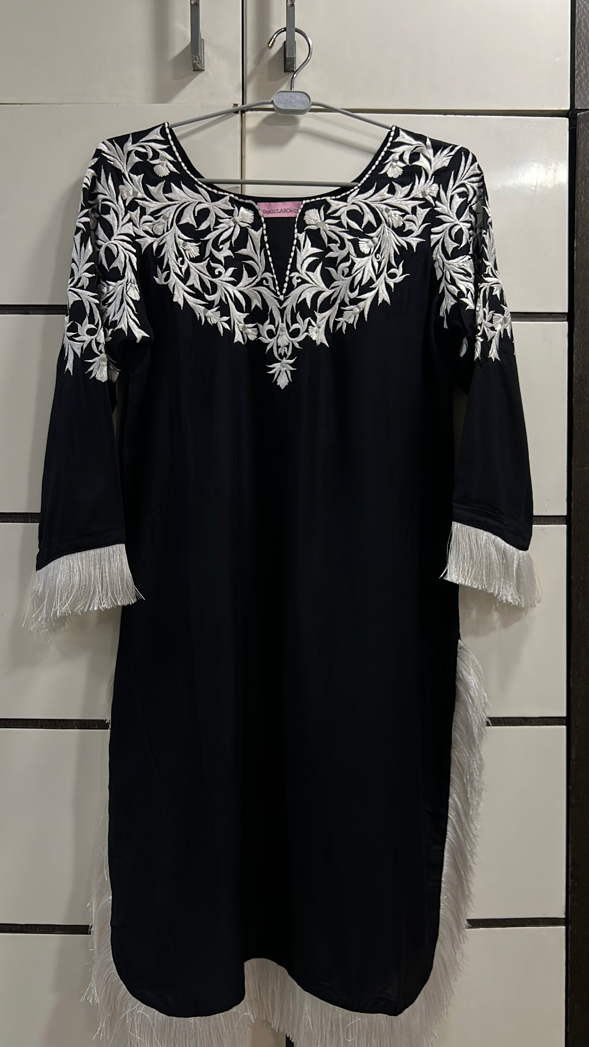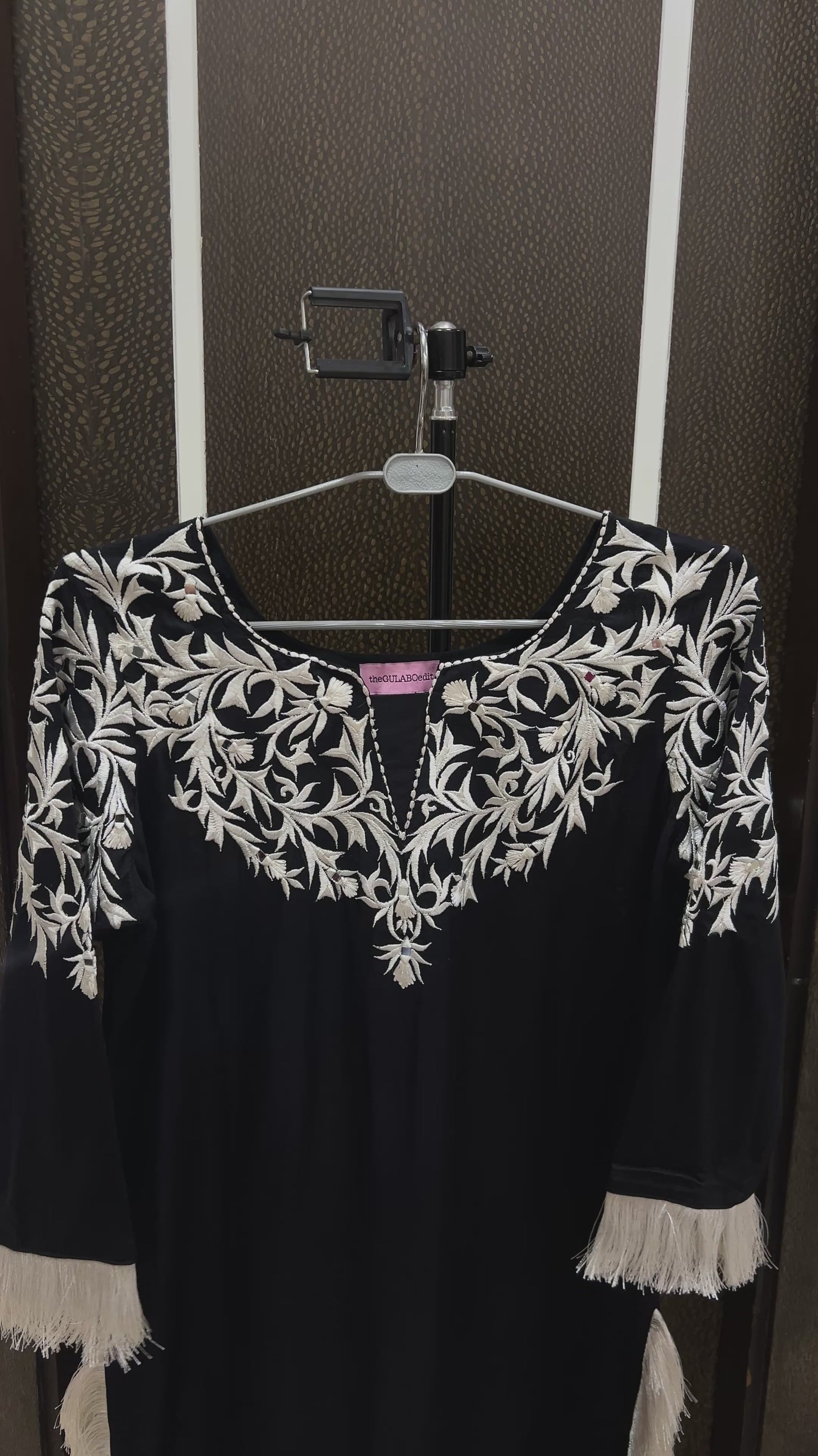 Make a lasting impression with the Shehzaadi Co-ord Set, a chic and timeless outfit that perfectly balances sophistication and comfort. This black co-ord set features intricate white floral embroidery along a graceful V-neckline, designed to flatter your silhouette and elevate your style.