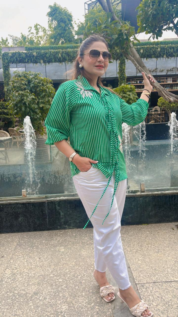 This Sequin Tie Up Shirt is crafted from high-quality cotton fabric, providing both style and comfort. The tie-up design adds a unique touch to any outfit. With pointers on how to style, this green shirt is perfect for any fashion-forward individual.